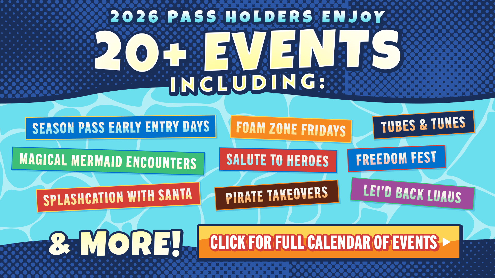 Your Shipwreck Island Season Pass pays for itself with up to $1,000 in benefits! This summer, experience nonstop excitement at Shipwreck Island with exclusive monthly perks for Season Passholders. Enjoy up to 5 free Bring-a-Friend tickets, free parking, delicious food and beverage credits, and half-price tickets for friends. Plus, make the most of over 20 summer events designed to keep the fun going all season long. Check out the Passholder Perks Calendar above to see what’s coming each month—and start planning your next splash-filled adventure at Shipwreck Island in Panama City Beach!